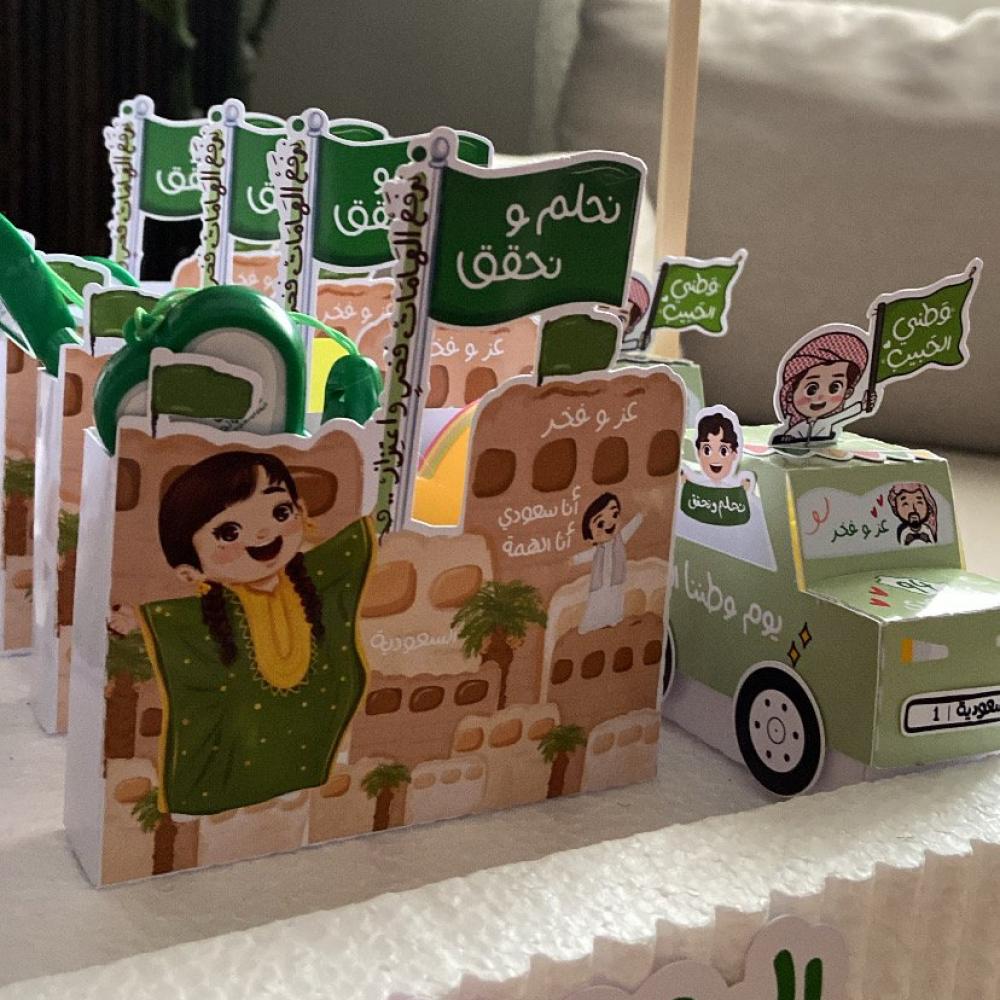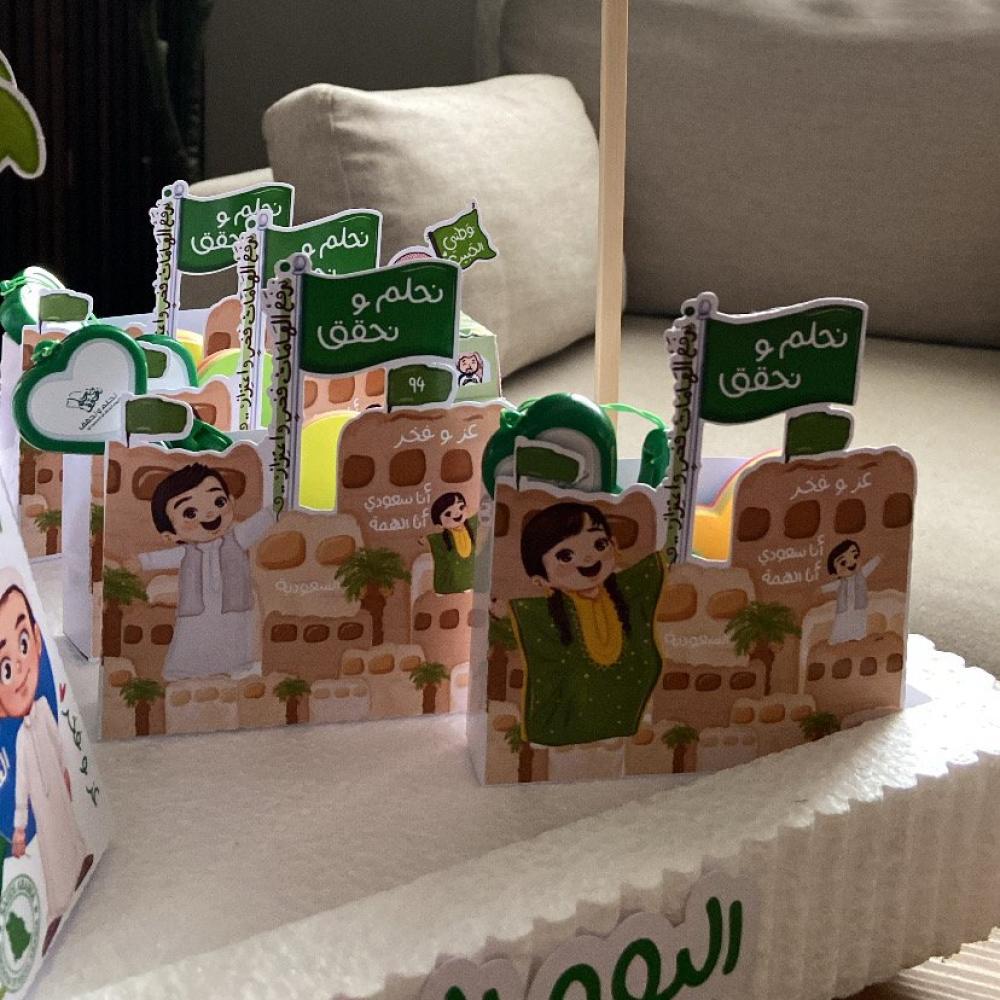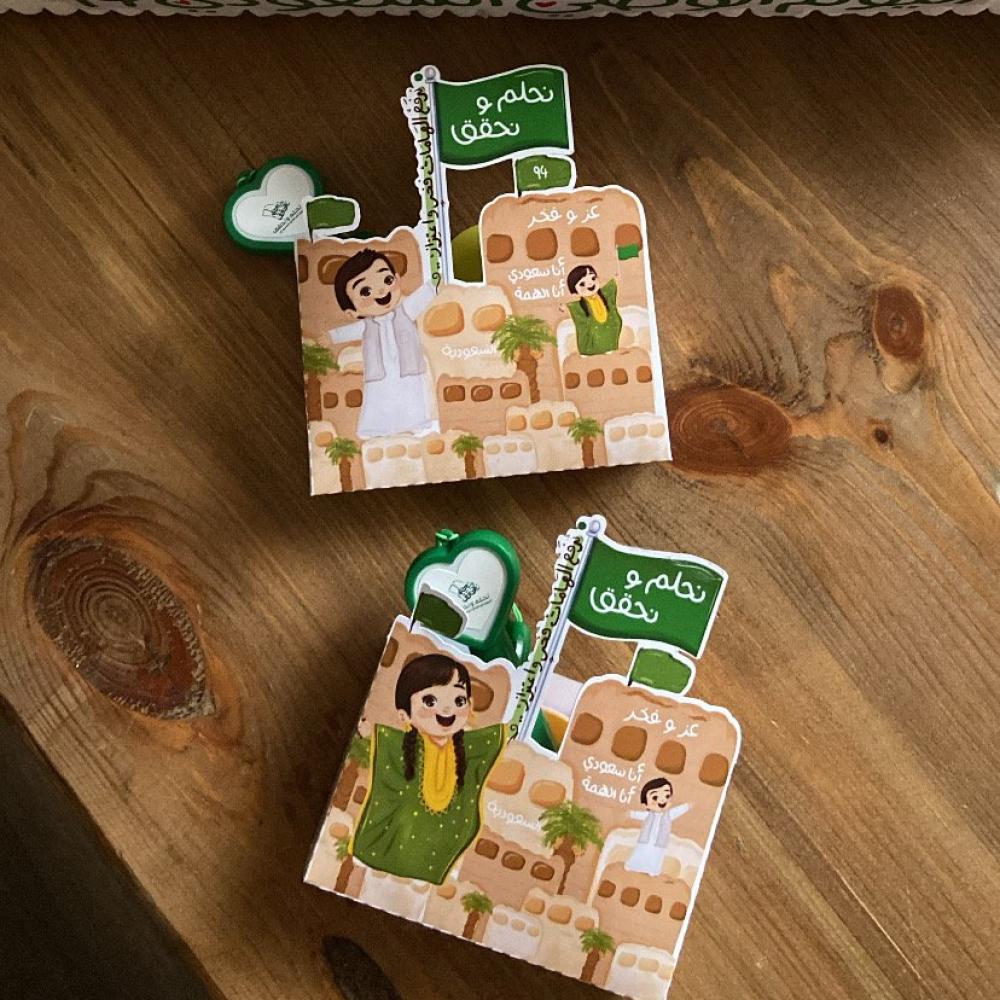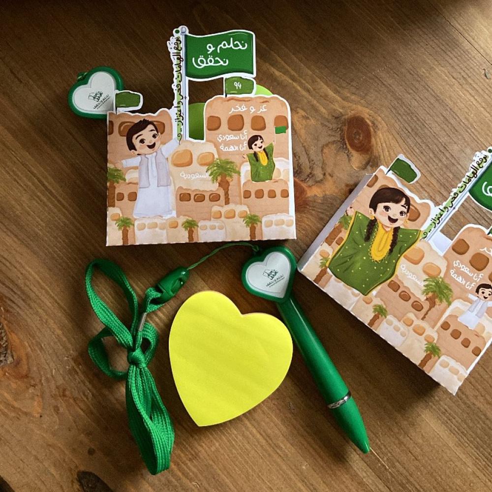 تعبئه البوكسات ورق ملاحظات + قلم مع الحبل بشعار اليوم الوطني